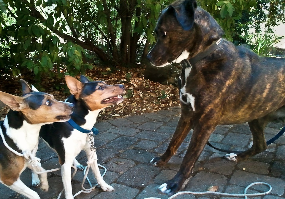 That changed the day the Adam-daughter found the fox hunters outside the door. Though the brindle was more proficient at the various communication media of the Adam children, her command of sign was passable enough that she recognized the newcomers desired to speak with her urgently. So after the Adam-son – whom she often thought of as the Headmaster – finished tying them to the hot tub lid’s lift bar she barked until he let her outside.
