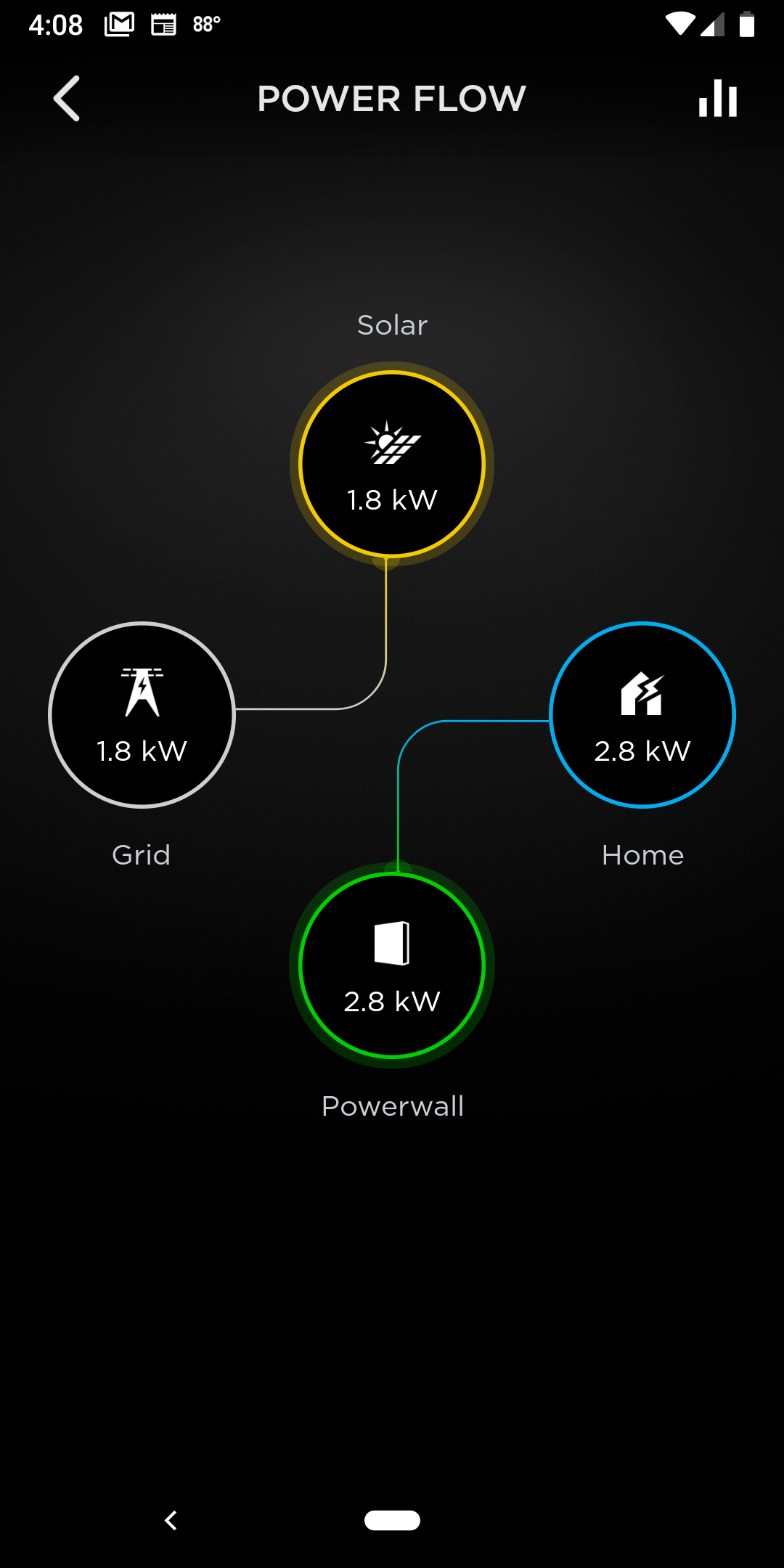 A solar installation running at peak capacity in the middle of the day reminds me of drawings of well-balanced chakras. The first image shows the panels meeting the electricity needs of the house, charging the Powerwalls and feeding back to the grid, and it’s a thing of beauty.