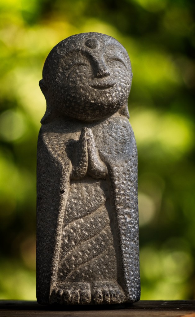 Waiting for our table we wandered through the Phoenix Shop. Billed as featuring gifts and local artists’ wares, years of slow economic decline had gradually crowded out the expensive latter in favor of the more impulse purchase-friendly former. Disappointed, we were about to leave and wander the grounds when tucked in a corner on the balcony I saw a small stone Buddha. It was simple, highly stylized – perhaps not a Buddha at all, as technically the “Laughing Buddha” Budai is not, but in the moment I didn’t care. It had the enigmatic, worldly otherworldliness appropriate to a Bodhisattva, and that was enough for me.